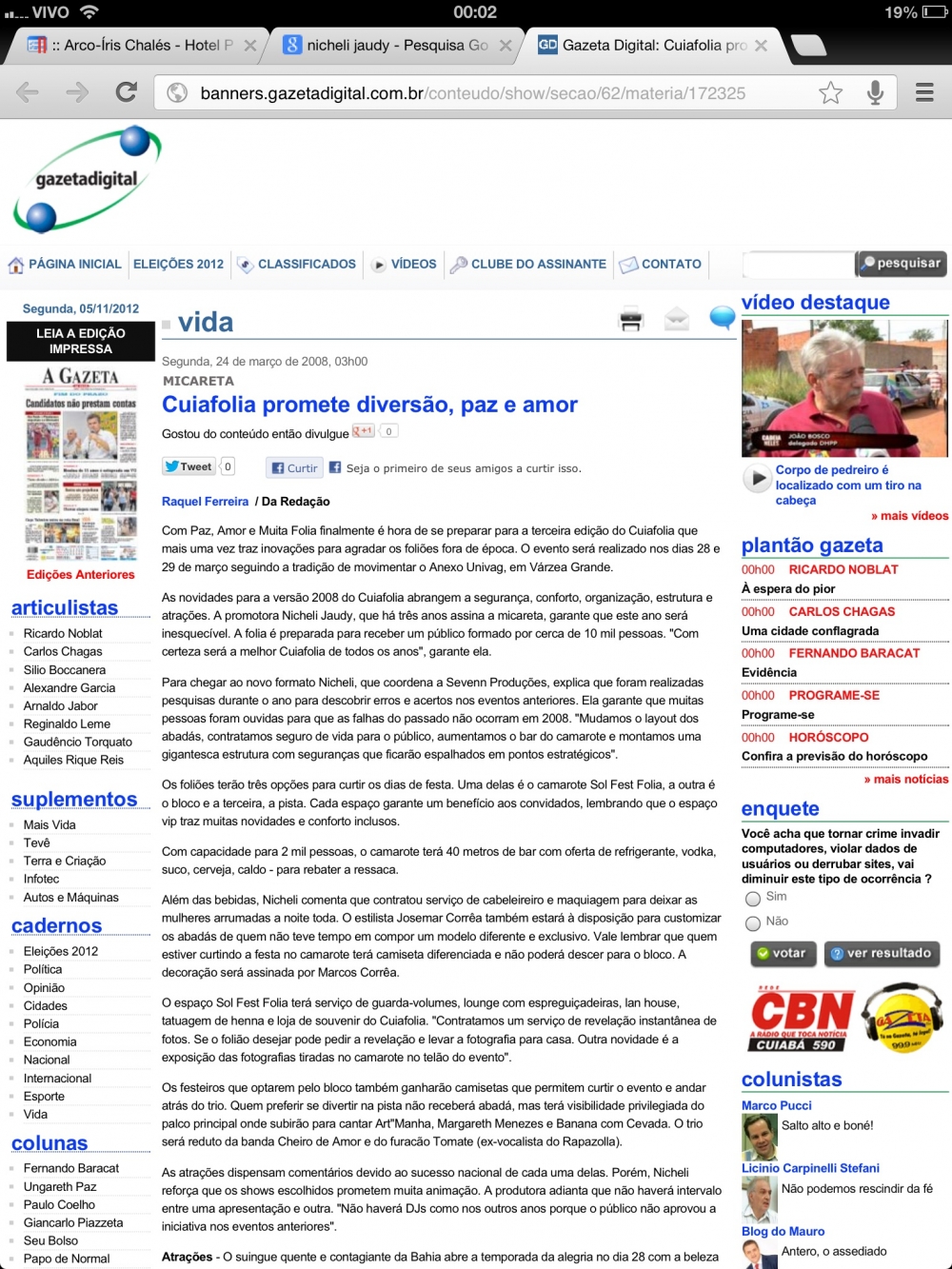Além de dirigir o Grupo Sevenn, a empresaria Nicheli Jaudy, escreveu mensalmente para a Coluna de turismo da revista Gente & Sucesso, do Grupo RDM, trabalhou tambem como promoter, assinando noites em casas noturnas de Cuiabá, como o projeto Meeting do antigo Canela Fina, os sambas dominicais do Democrata Pub e as sextas do Club Nuun.
