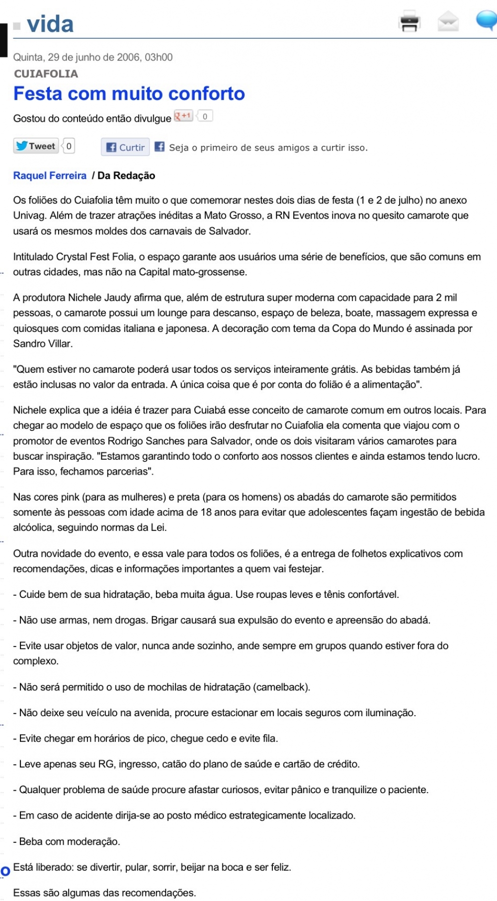 Em 2006 a empresária Nicheli Jaudy desenvolveu o projeto: Cuiafolia “Todos atrás do caminhão” realizando a primeira edição do evento, que contou com as bandas baianas Eva e Rapazolla reunindo cerca de 7 mil foliões. Em 2007 as bandas RapazolIa, Oz Bambaz e A Zorra animaram 11 mil pessoas em cada dia de folia e foi a partir daí que o projeto ganhou força sendo, inclusive, inserido no calendário cultural oficial de Cuiabá. Em 2008, o evento teve a sua terceira e ultima edição, com um publico recorde de 15 mil pessoas e foi considerado um dos melhores carnavais fora de época do Brasil.