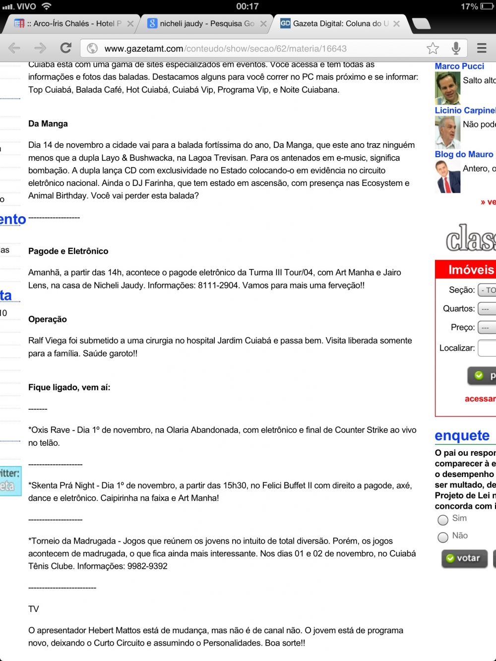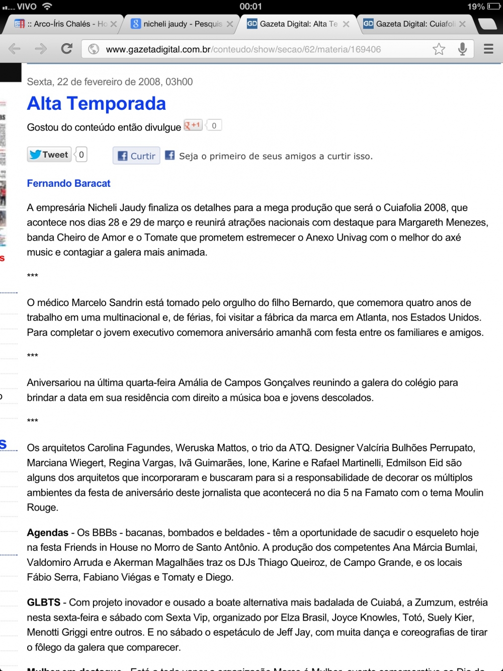 Além de dirigir o Grupo Sevenn, a empresaria Nicheli Jaudy, escreveu mensalmente para a Coluna de turismo da revista Gente & Sucesso, do Grupo RDM, trabalhou tambem como promoter, assinando noites em casas noturnas de Cuiabá, como o projeto Meeting do antigo Canela Fina, os sambas dominicais do Democrata Pub e as sextas do Club Nuun.